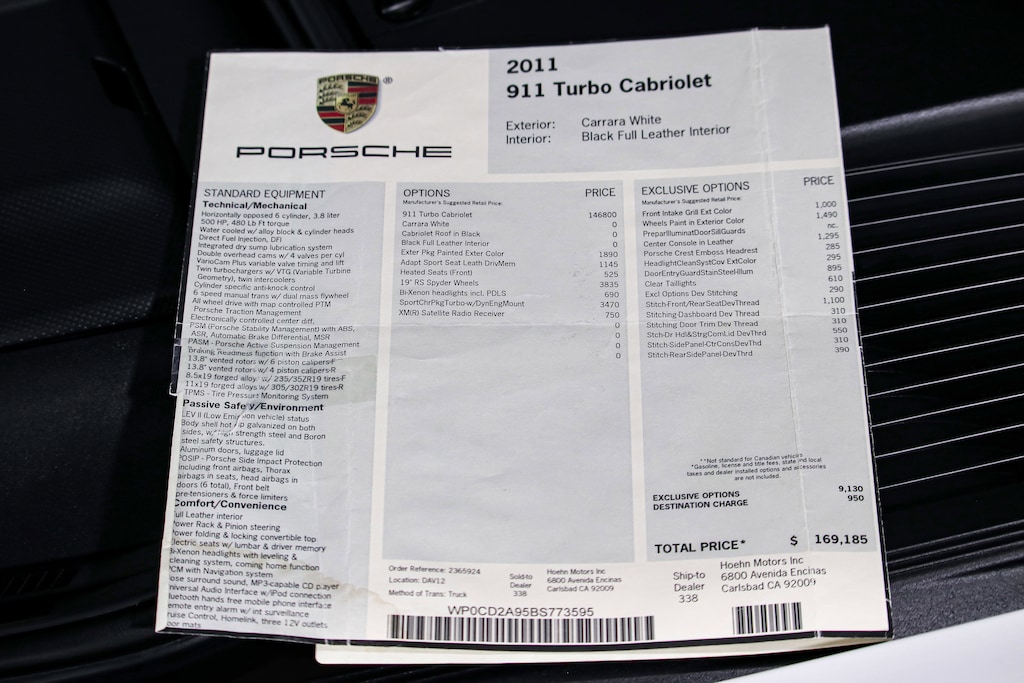 Finished in Carrara White over Black full leather, this 2011 Porsche 911 Turbo Cabriolet is a rare 997.2 example - one of just 292 Turbo Cabriolets built for the model year and even more uncommon with its 6-speed manual transmission. Configured at an original MSRP exceeding $169,000, this Turbo is highly optioned with Exclusive details including body-color 19" RS Spyder center-lock wheels, bi-xenon headlights with PDLS, clear taillights, the Sport Chrono Package Turbo with Dynamic Engine Mounts, heated Adaptive Sport Seats, and deviated interior stitching. Originally sold in California, the car was acquired by the current owner in 2019 from Pennsylvania.