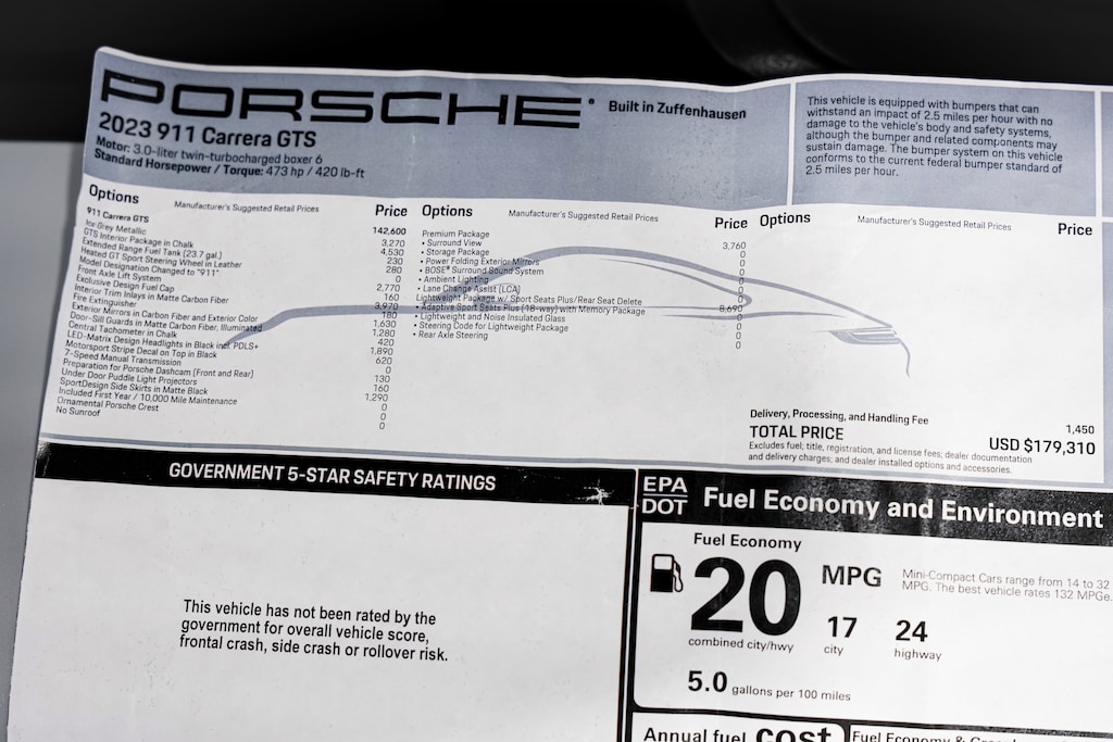 Assembled with the most discerning driver in mind. Turbocharger technology provides forced air induction, enhancing performance while preserving fuel economy. With less than 10,000 miles on the odometer, this car combines world-recognized style and capability with practicality and plenty of verve on the road! Porsche prioritized handling and performance with features such as: an automatic dimming rear-view mirror, rain sensing wipers, and cruise control. Porsche made sure to keep road-handling and sportiness at the top of it's priority list. It features a standard transmission, rear-wheel drive, and a 3 liter 6 cylinder engine.